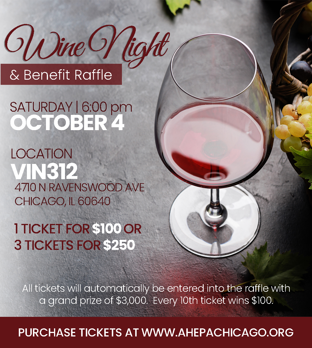 Join AHEPA Chicago Lakeshore Chapter 205 for a Wine Night & Benefit Raffle on Saturday, October 4. Tickets include wine, food, and automatic entry into the raffle. Learn more information at the link below and where to get tickets